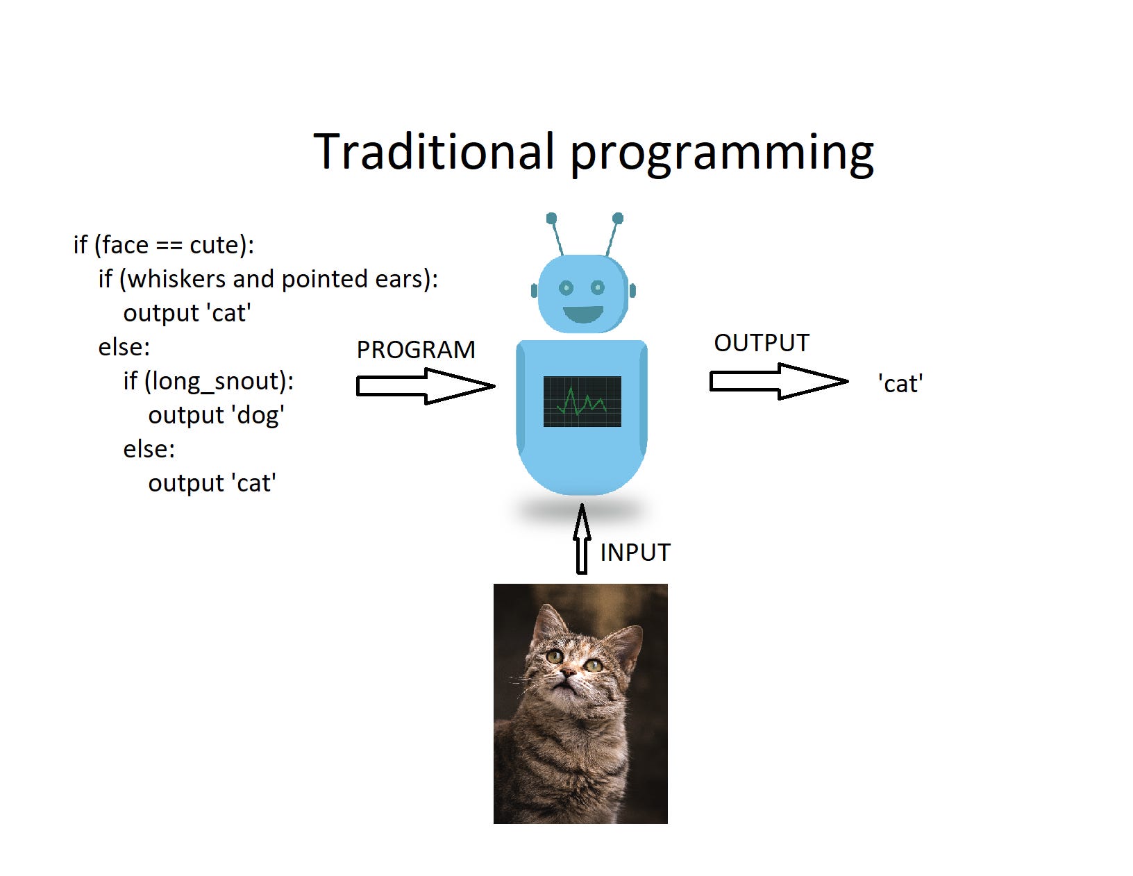 Unlike traditional computer programs that follow explicit instructions to execute tasks, AI can learn patterns and make decisions based on data. AI can, for example, estimate the price of a house by analysing numerous factors (features such as the size and age of the house, its location, real-time real-estate indicators, and many more) without being told explicitly how the price depends on these factors.