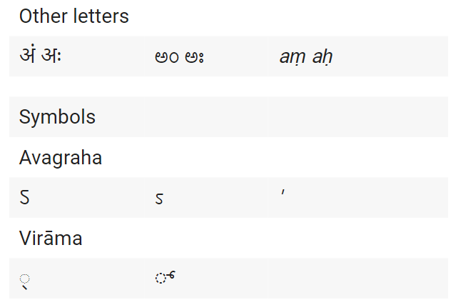 Consonants: Consonant sounds are produced with partial or complete closure of the vocal tract, restricting airflow, e.g., k, p, jh, n; we will consider anusvāra (ं/ಂ/ṃ) and visarga (ः/ಃ/ḥ) as consonants.